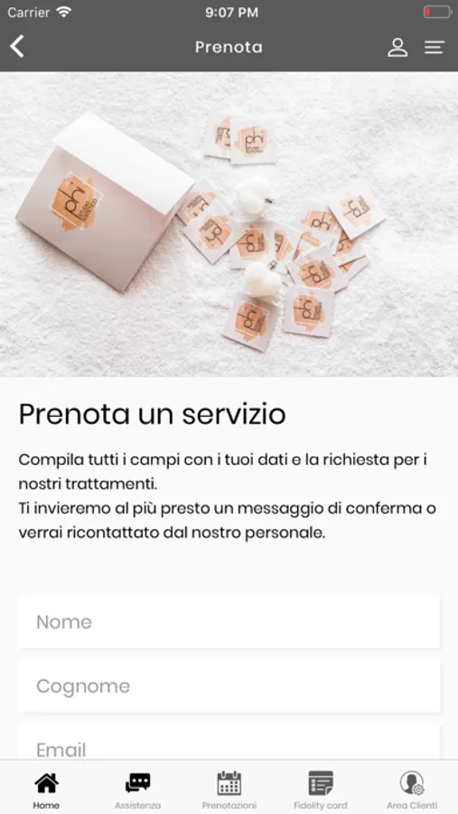 Tramite app puoi registrarti e prenotare i servizi svolti dal centro estetico, consultare i tuoi punti fedeltà e ricevere tutte le ultime news.