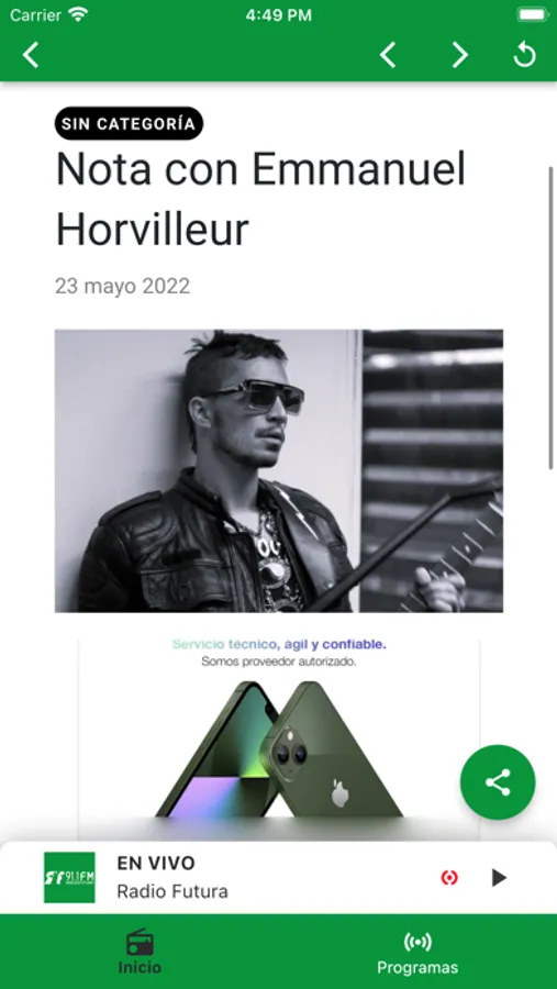 App Oficial de Radio Futura. Radio Futura es una emisora de radio de Montevideo, Uruguay, que transmite en la frecuencia FM 91.1 MHz