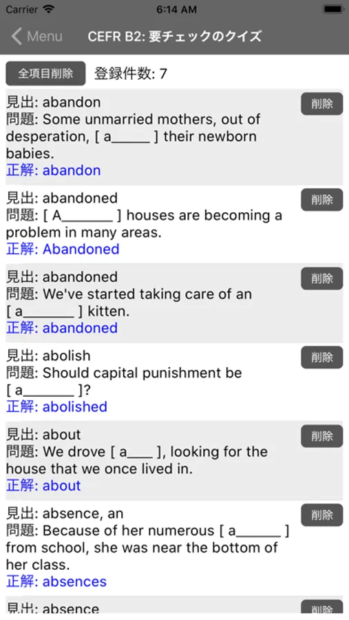・正答率が100%になるまで不正解やスキップした問題に繰り返し挑戦することができます。