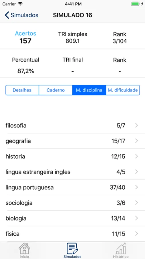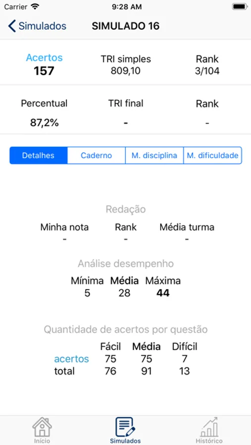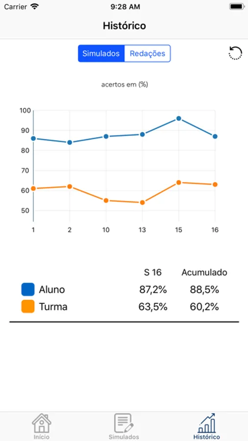 A Escola Educação Criativa disponibiliza uma ferramenta para acompanhamento dos simulados e redações realizadas ao longo do ano letivo.