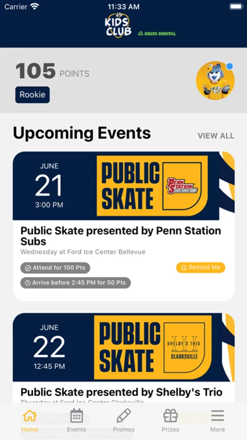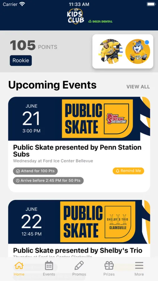 • Automatically earn reward points when you attend Nashville Predators games and certain Kids Club events
