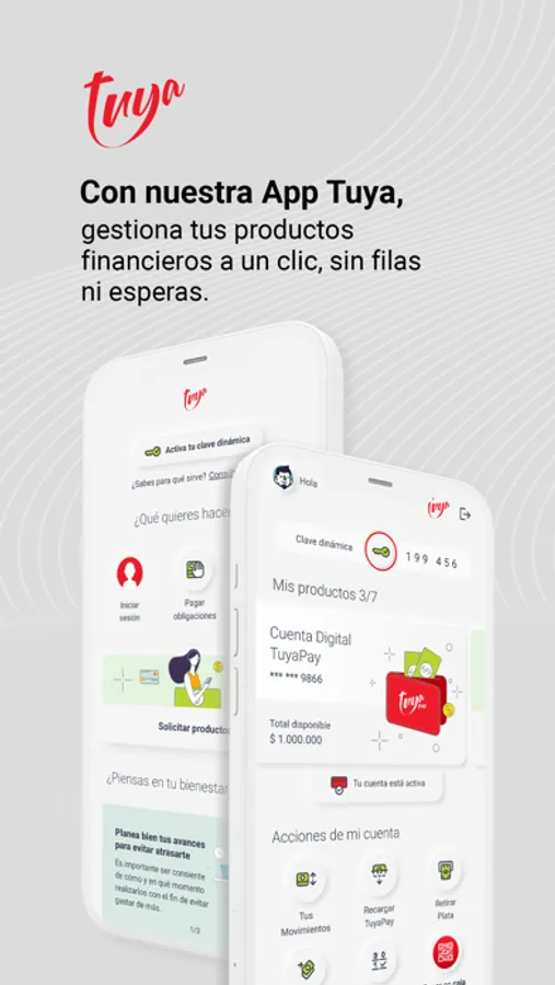 Además, podrás solicitar y gestionar tarjetas de crédito y otros productos financieros como Cuenta Digital TuyaPay.