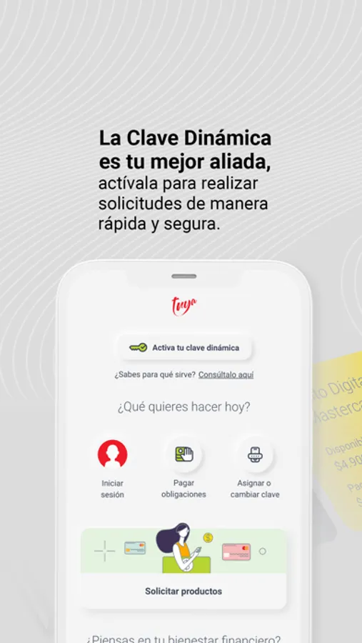 Además podrás solicitar y gestionar tarjetas de crédito y otros productos financieros como Cuenta Digital TuyaPay.