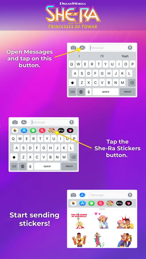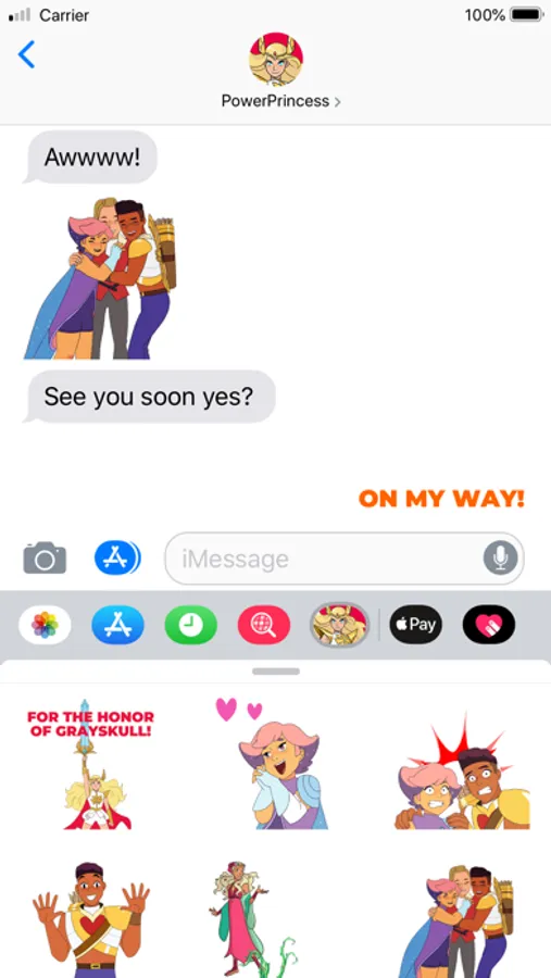 Step 2: Tap the She-Ra Sticker icon in the app drawer and start sending stickers!
