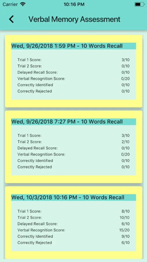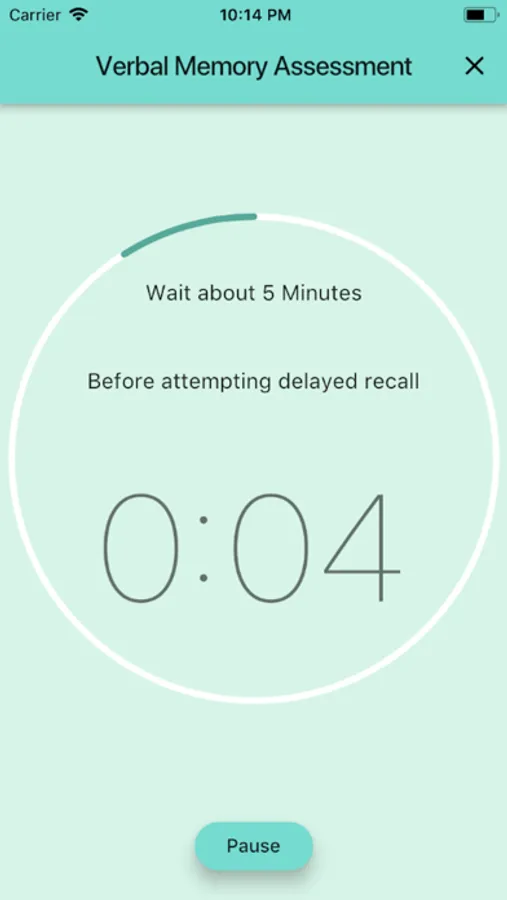 The Verbal Memory Assessment App is a tool for verbal memory assessment in a clinical setting. It is intended for health professionals familiar with cognitive assessment. It provides a 10-word-list for immediate recall, delayed recall and recognition based delayed recall. Suggested cut-scores are provided as assessment for normative data has not been done.