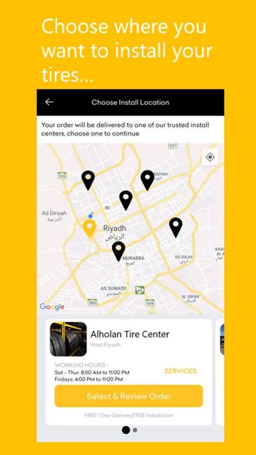Estbnh App helps you find the best tires for your car at the best price. Simply enter the tire size you need and Estbnh will show you the latest offers from tire providers in your city. Pick a tire and have it delivered to one of our approved install centers near you, where you can go and install your brand-new tires.
