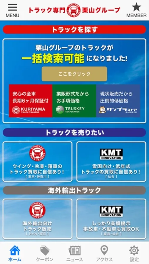 栗山自動車グループアプリは、お得なトラック売買にご活用いただけます。