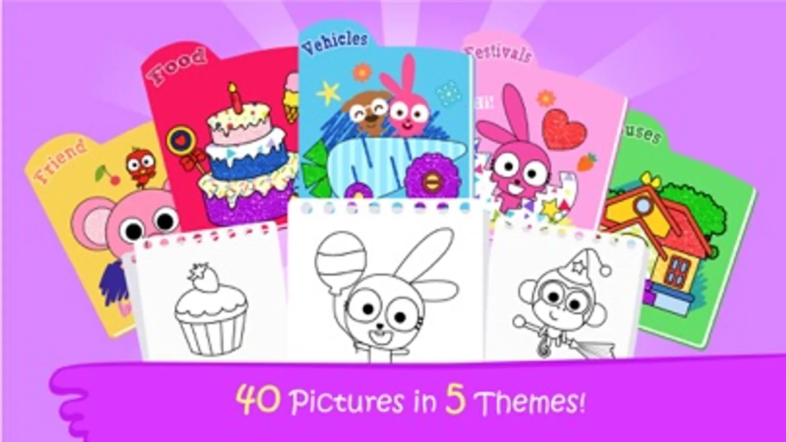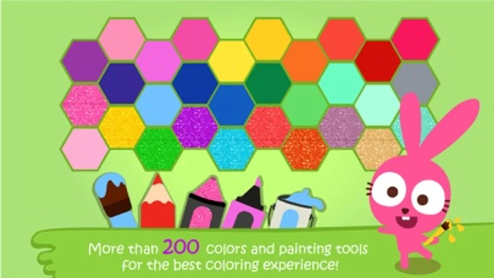 Attention please, little artists! Purple Pink the Bunny has the most incredible coloring book! Lots of pictures, tons of colors and tools! Create your painting artwork!