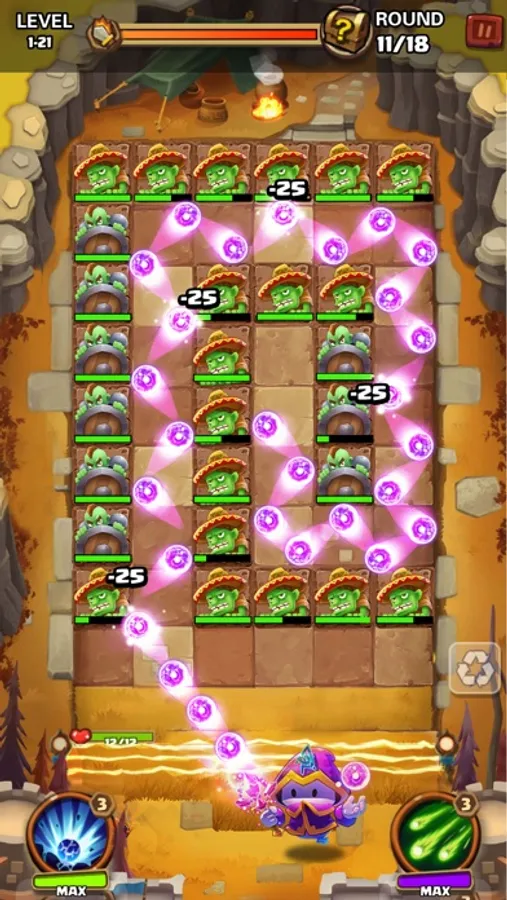 It’s a new brick breaker game. Practice your pinball ability, upgrade magic skills, crush all monsters, protect your homeland, and become the wizard master! You will fight against various powerful monsters in different maps: Will Mountains, Mystical Valley, Lava Land and etc. Keep an eye on their fighting style and adjust your launch strategy so that you can get victory successfully. Also pay attention to your magic barrier in battle, that is your last fortress!