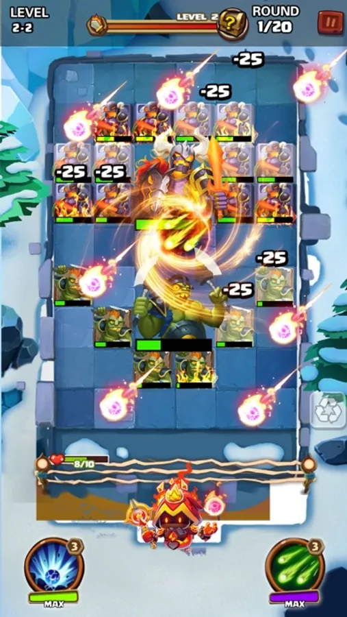 -Click and slide magic pinball to aim at monsters