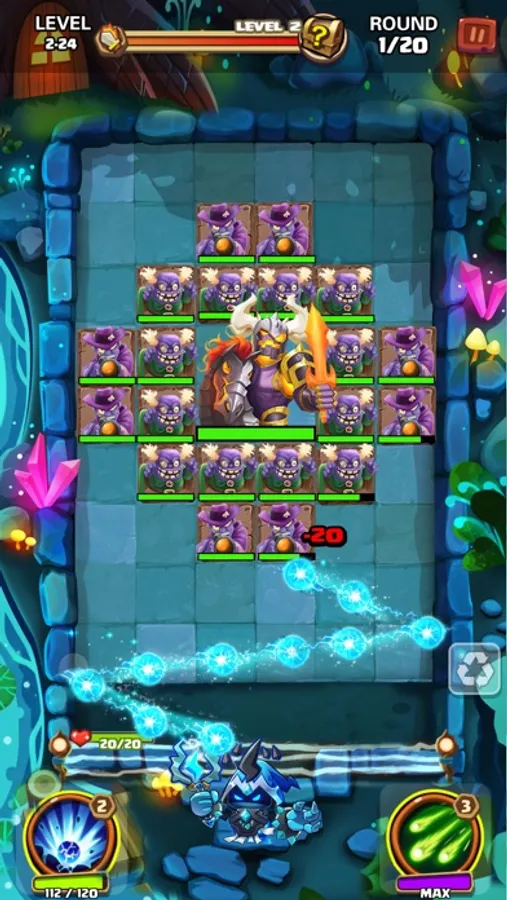 -Select a best angle to bounce as many times as possible to crush the monsters