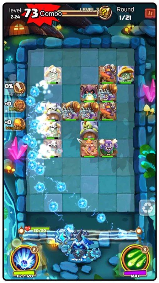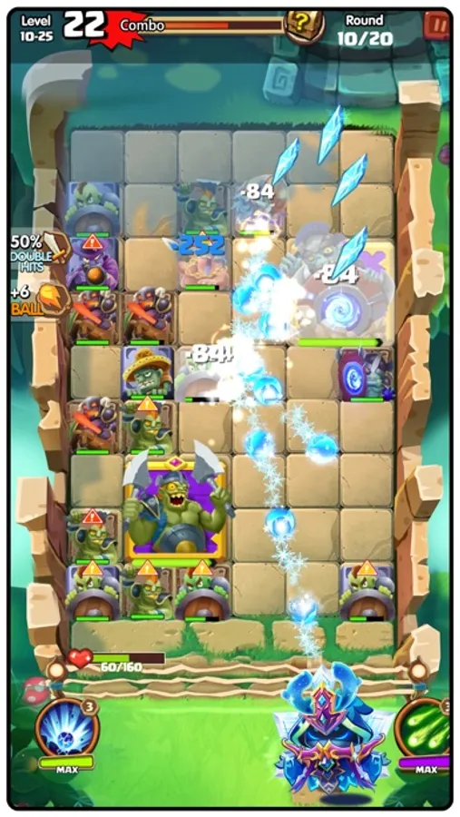 -The more times the magic ball bounces, the more damage it causes to monsters, and you will also receive a high combo reward
