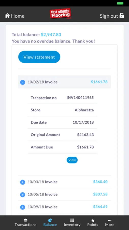 View all your account details like invoices, credit memos, and account balance. Download PDF files of your transactions or statements for your record. See which invoices are coming up due so you can keep your account up to date.
