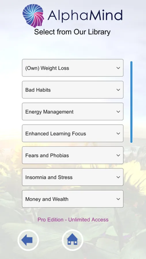 This account allows you to create unlimited audio programs, with unlimited saving options. You will have access to only 2 relaxation techniques, 2 categories from our library and 2 music tracks. In app purchases are available in this account.