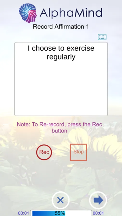 Step 2: Record affirmations in your own voice (from our library or design your own).