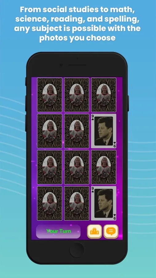 Picture This puts a modern-day twist on the classic card-matching memory game. Upload your own photos as the images to match and share memories with family and friends all through a fun game! Add captions to your photos to match for an extra challenge and control the difficulty level to customize your game even further.