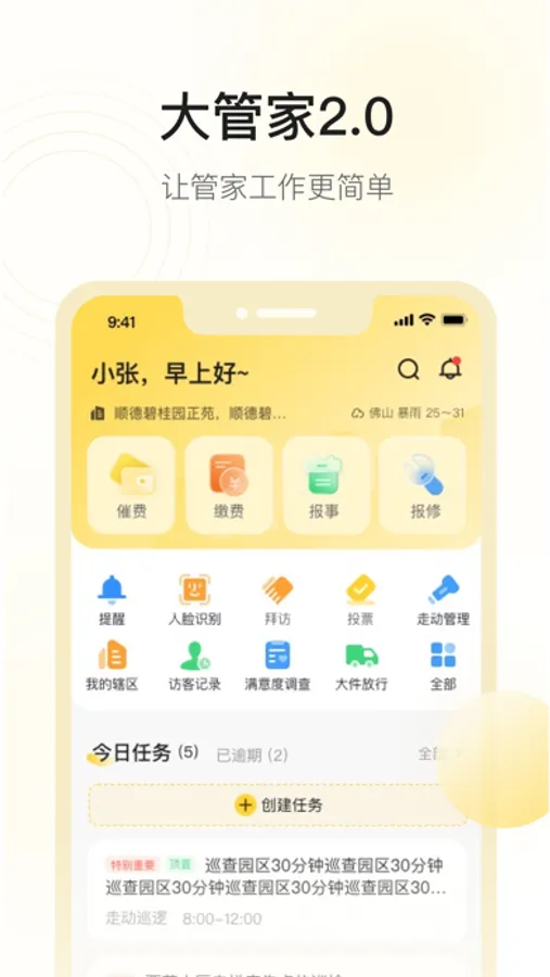 大管家是一款专为辅助管家用户工作的工具类软件,能帮助物业公司有效进行每位管家的赋能。让他们随时随地的管理业务、读取数据、响应住户。是提升工作效率,提高住户服务满意度的利器。