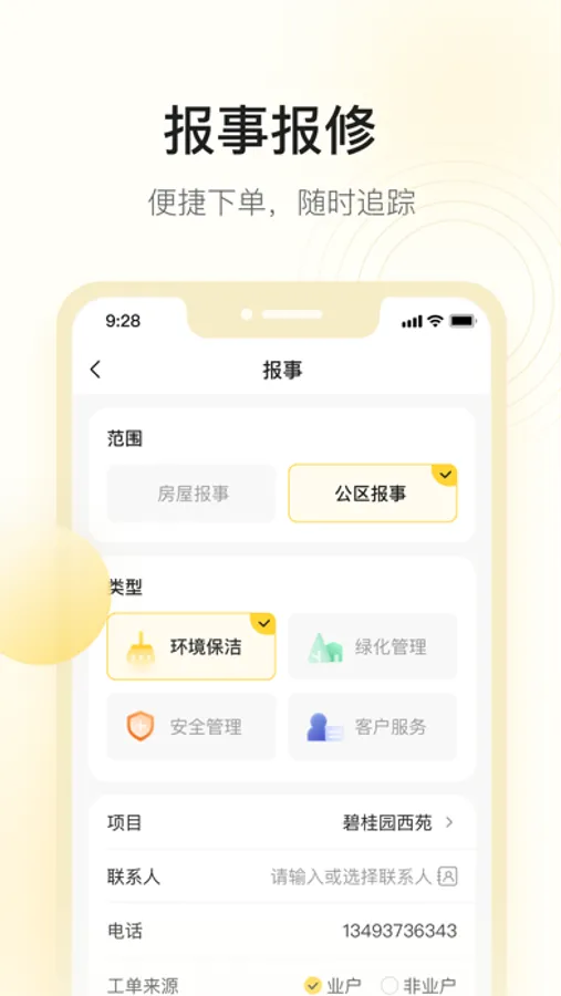 1) 报事报修工单的跟踪与处理;