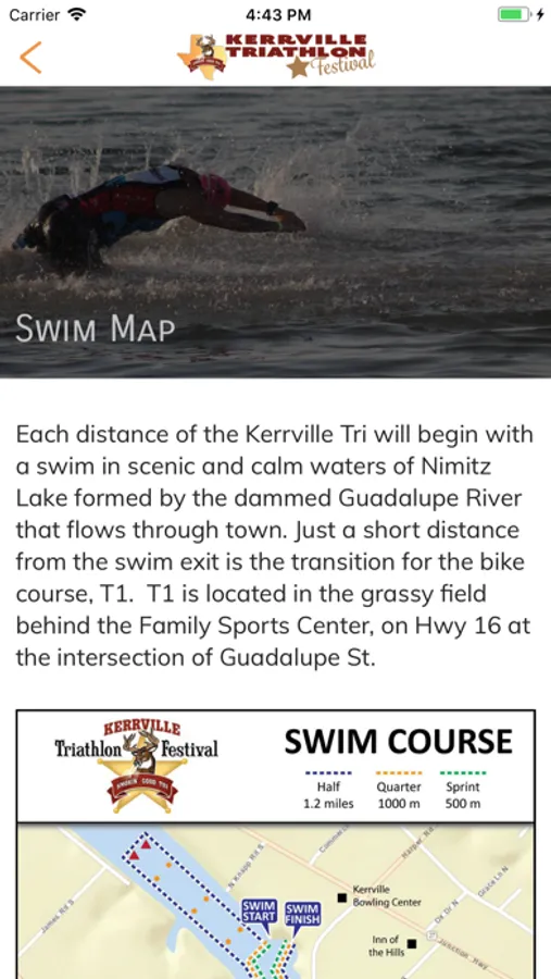Kerrville Triathlon Festival takes place in Kerrville, Texas on the final weekend of September. Kerrville Tri Fest consists of multiple events including a sprint triathlon, intermediate and half distance triathlons. There is also a free kids run and expo.