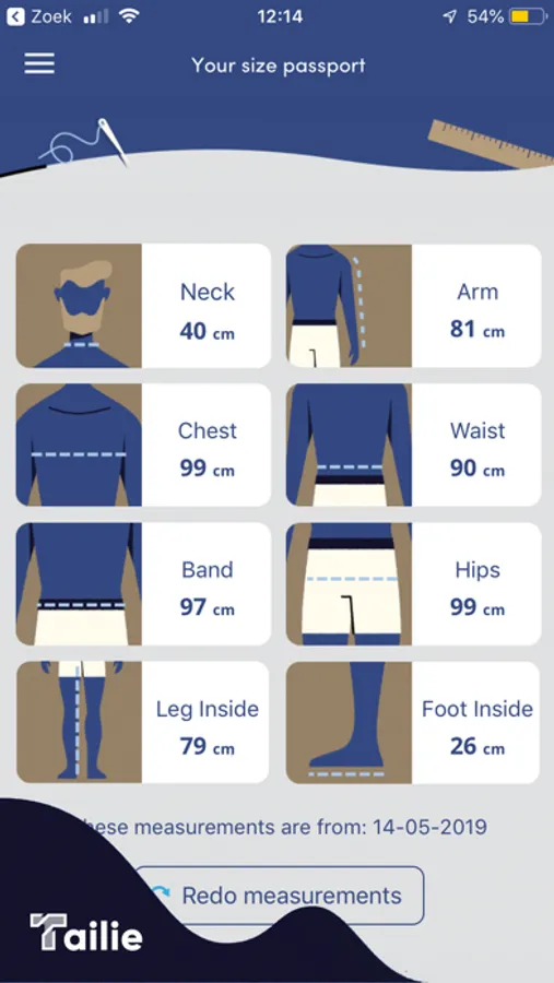The Tailie app measures your exact body measurements with high accuracy in just a few easy steps. Your sizes are stored in your personal Tailie size passport, which you can use in all connected web shops. Just simply click the Tailie button to match your body sizes with the clothes you want, and Tailie shows you the right size. Now you can shop confident and comfortable online. It’s like carrying a virtual tailor in your pocket!