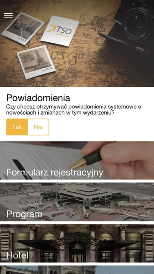 Aplikacja dla uczestników wydarzeń organizowanych przez TSO Incentive. Znajdziesz tutaj wszystkie niezbędne informacje o wydarzeniu, w którym bierzesz udział - dokładny program, informacje o hotelach, odwiedzanych miejscach i wiele innych praktycznych informacji. Aplikacja to również szybka i skuteczna komunikacja w trakcie trwania wydarzenia dzięki powiadomieniom PUSH. Aplikacja umożliwia dostęp do danych wydarzenia w trybie offline.