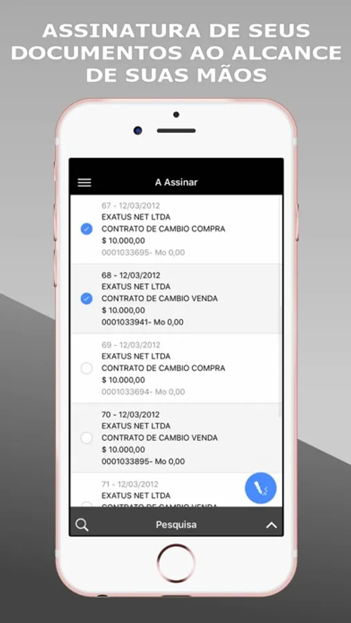 A partir do momento em que o documento estiver finalizado na instituição financeira, será disponibilizado no aplicativo para as partes envolvidas assinarem eletronicamente.