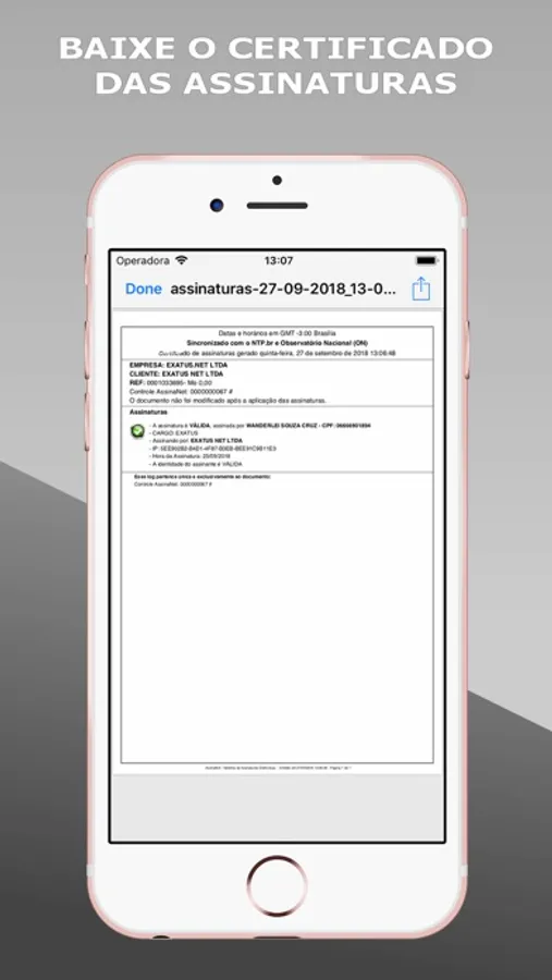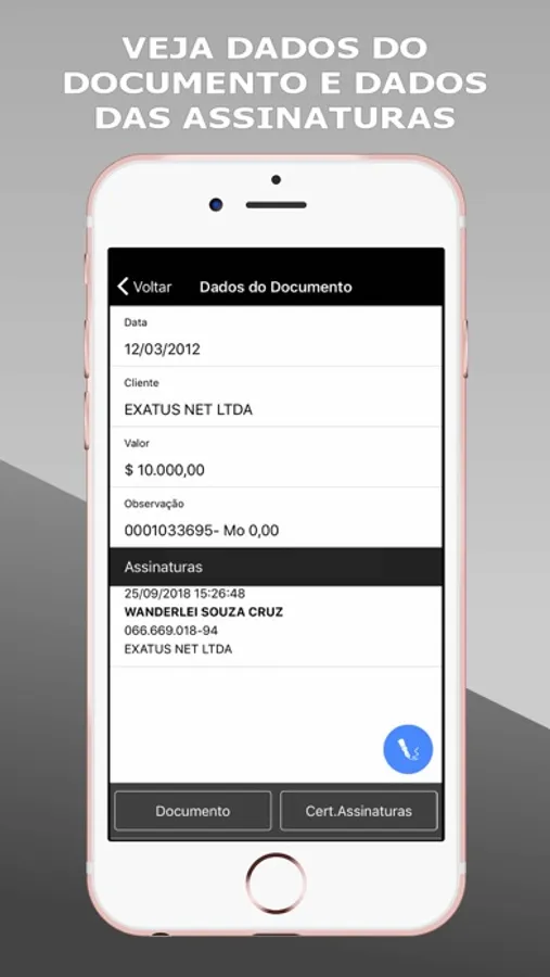 • Acesso rápido aos dados dos documentos e assinaturas realizadas;