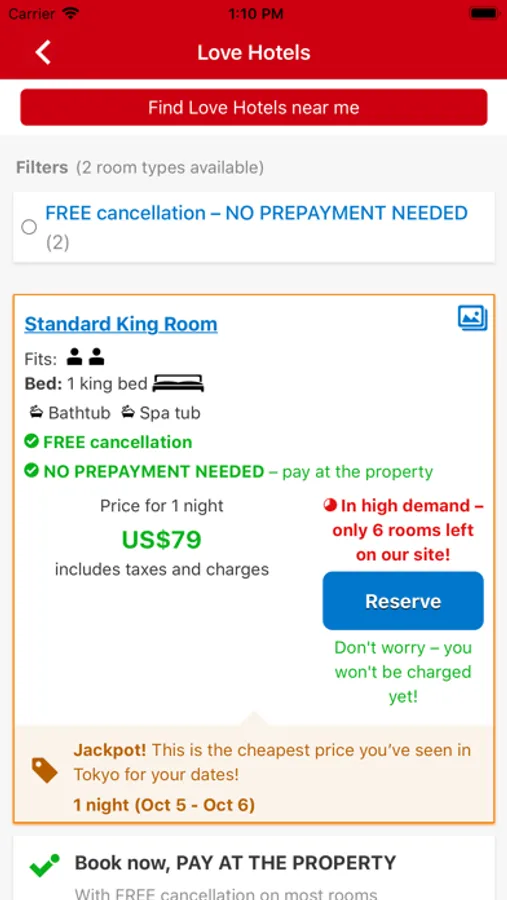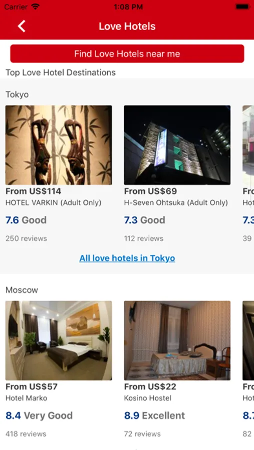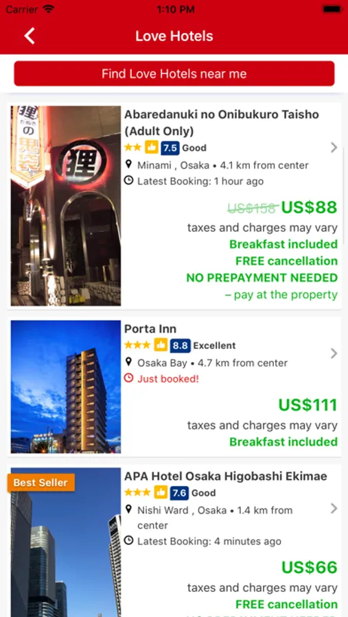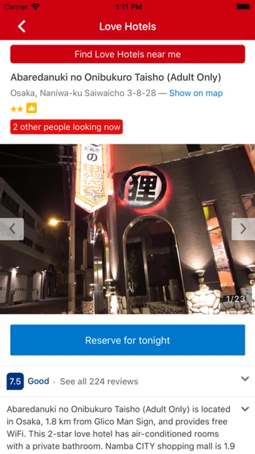 Discover the best Love Hotels around you. Compare prices, availability and distance from your current location. Book easily directly from your mobile phone so you don’t miss out on the best deals. Often free cancellations.