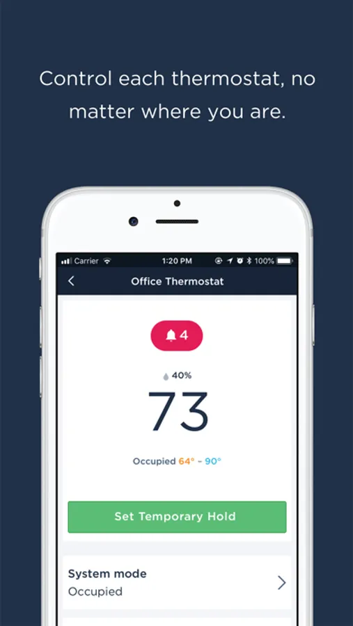 ecobee SmartBuildings is a thermostat management software for multi-site businesses. The SmartBuildings mobile app gives you access and control over each thermostat, no matter where you are.