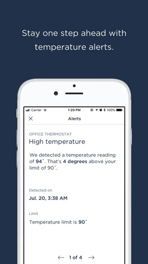 • Stay one step ahead with temperature and HVAC equipment alerts