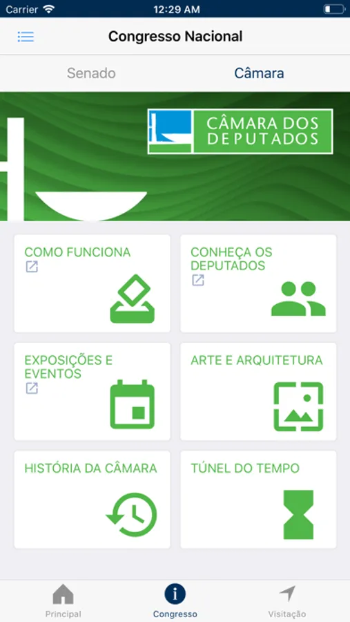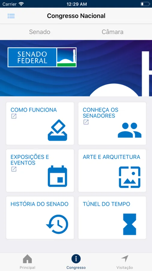 O aplicativo visa trazer mais interatividade à experiência de Visitação ao Congresso Nacional. Por meio do escaneamento de QR Codes, você poderá obter informações complementares sobre objetos e locações do Congresso. O aplicativo reúne ainda informações sobre a visitação presencial, fácil acesso a links, como chegar, guias e agendamento da visita.