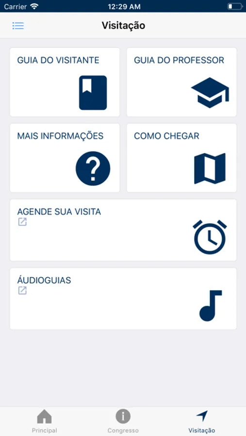 -- ÁUDIOGUIAS: disponibiliza os áudioguias em diversos idiomas;