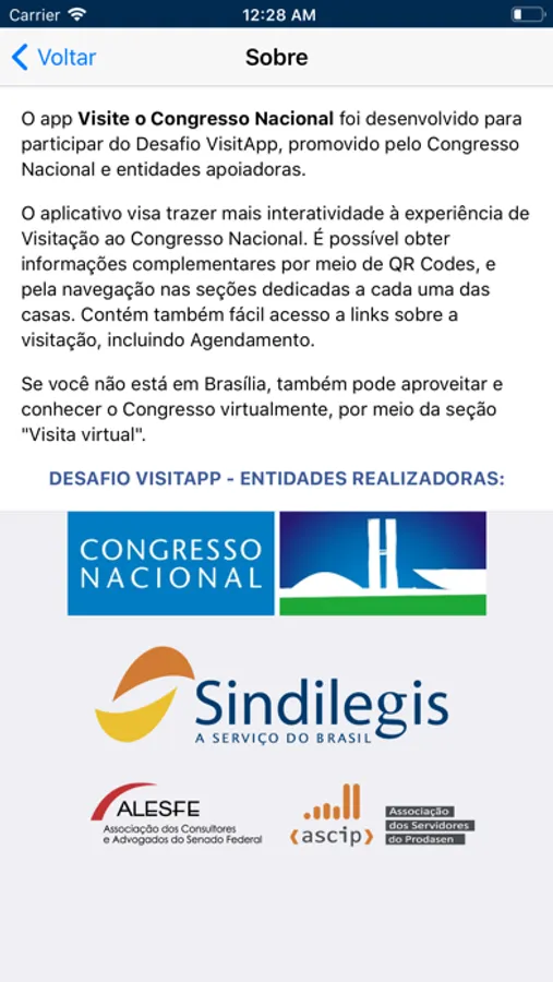 O app "Visite o Congresso Nacional" foi desenvolvido para participar do Desafio VisitApp, promovido pelo Congresso Nacional e entidades apoiadoras.