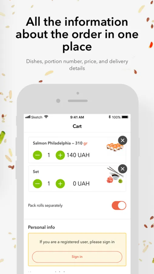 At Ninja Sushi, you can order classic sushi, as well as ones cooked according to the chef's own recipes. We guarantee the quality of products, the freshness of the ingredients and the size of servings that will pleasantly surprise you. The assortment includes rolls, sushi, snacks, sets and drinks for every taste. Our couriers won’t even leave your pets without surprises!