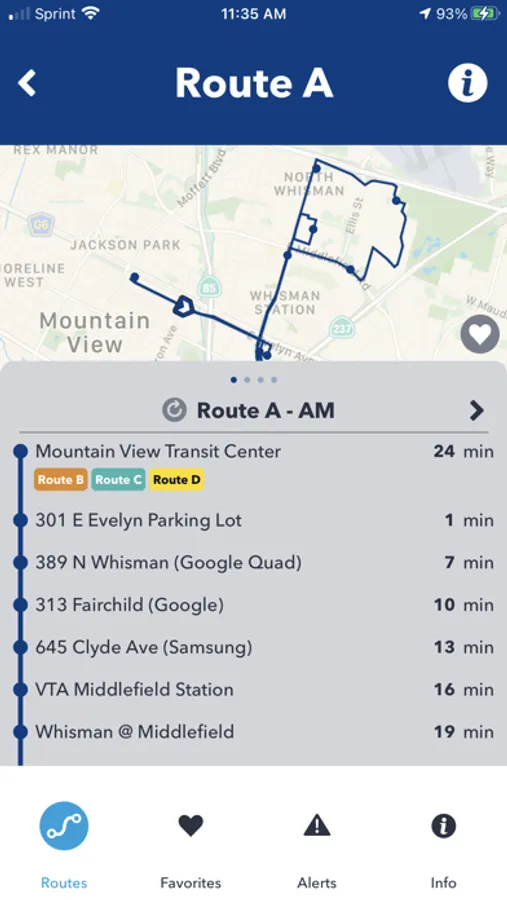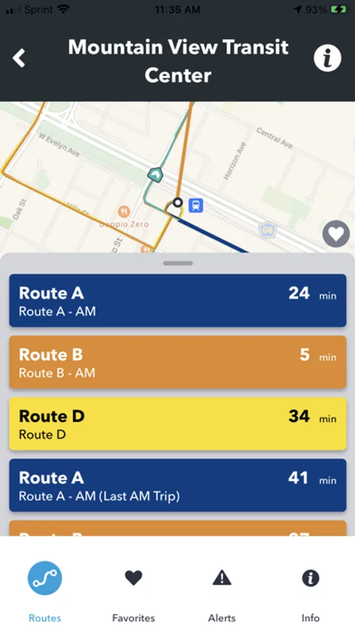 RIDEMVGO provides real-time tracking information for the MVgo shuttle service in Mountain View, CA. Use the app to view real-time shuttle arrivals, mark favorite stops and routes, set reminders, sign up for alerts, and access general information.