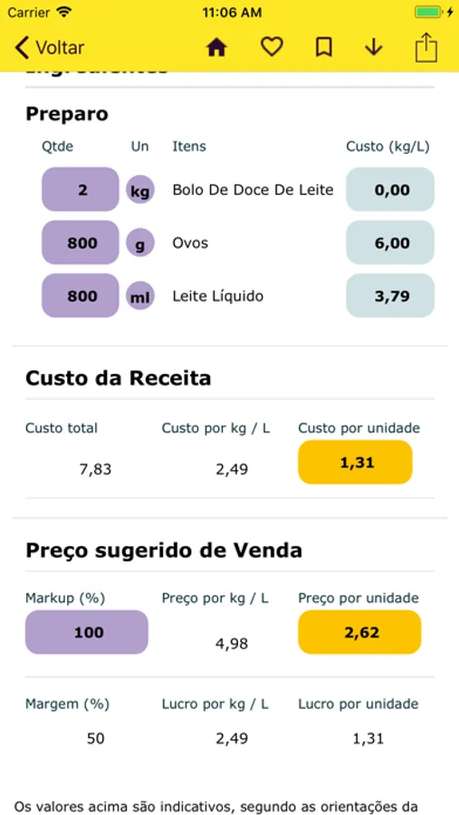 - Calculadora de Folha de Custo: o panificador poderá facilmente calcular o custo final da sua receita, balancear as porções e definir o melhor preço de venda.