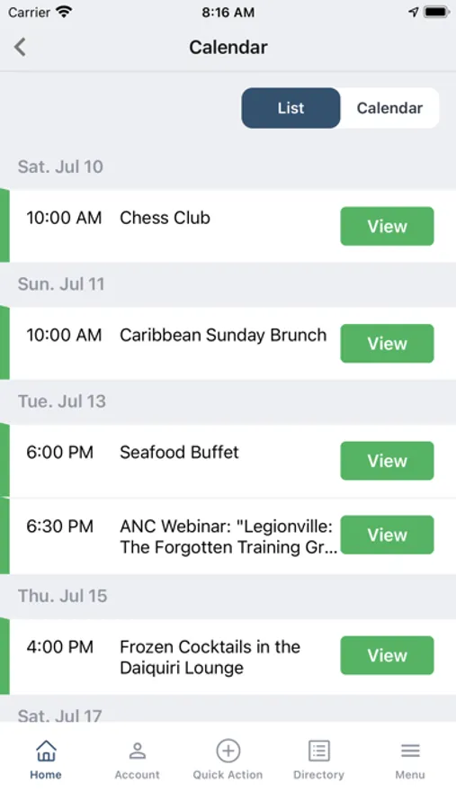 With an intuitive interface, The Army and Navy Club app easily lets you access the Club’s calendar of events and make reservations, request dining reservations, update your profile and view the member and staff directory, view statements, and so much more!