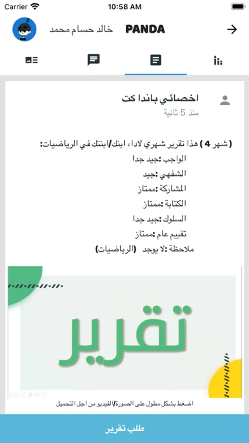 تتيح هذه الخاصية لولي الأمر مشاهدة التقارير السلوكية والأكاديمية الخاصة بكل إبن له مسجل في النظام بصورة مبسطة , و التى تكتب بشكل دوري من قبل الاخصائي .