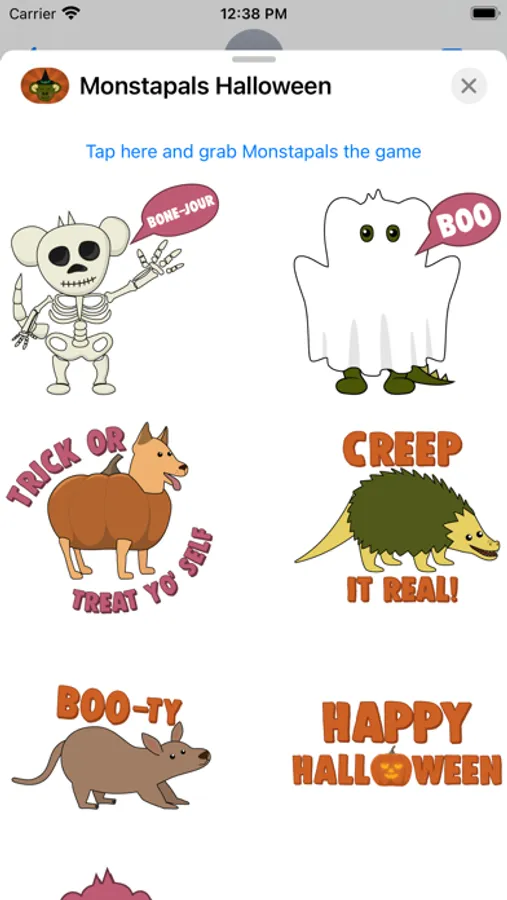 Trick or treat yo'self with these Halloween themed stickers from the game Monstapals. There's no better way to greet your friends than with a 'bone-jour' from our favourite character from the game.