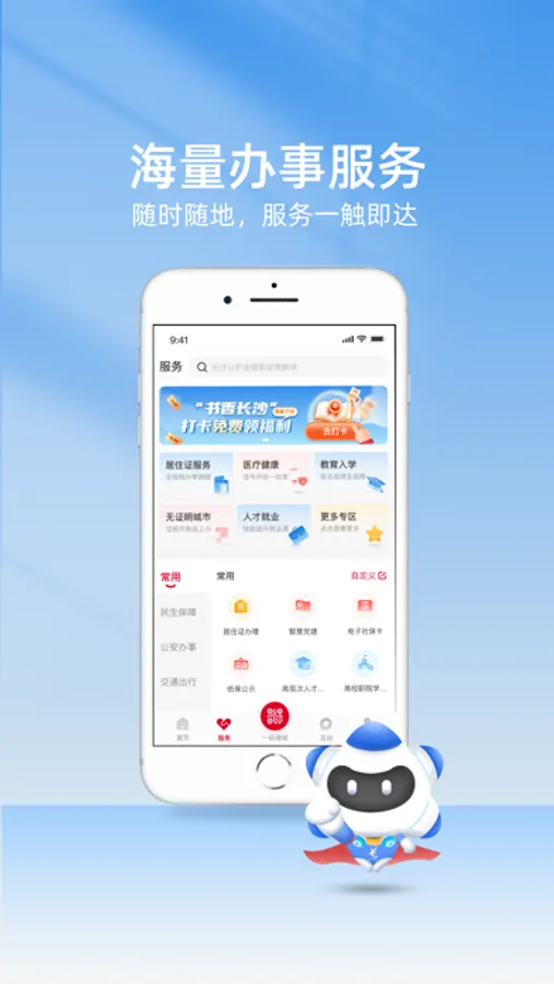 “我的长沙”是长沙市人民政府为市民打造的一站式城市移动综合服务+融媒体平台。秉承“以市民为中心”的理念,汇集政务、公共及社会服务、融媒体资讯于一体,打造移动端城市服务统一入口。“我的长沙”聚焦地铁、公交扫码,社保、公积金查询、公安落户等高频服务,集成健康码、电子证照亮证等便民服务,提供居住证、户口、入学报名在线办,汇聚全媒体资讯内容,以大数据技术为依托,为市民提供个性、精准、智能化服务,持续提升长沙市民归属感、幸福感。我的长沙,我在长沙!