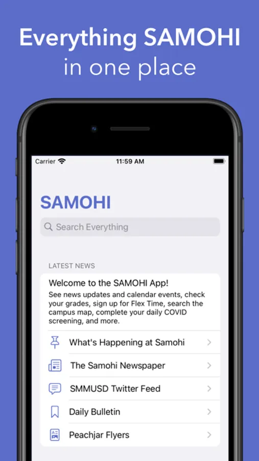 Check your grades with a single tap - Schedule Flex Time periods with ease - See school news as it breaks - Check when the next football game is - Search an interactive campus map - all with the Santa Monica High School App! The SAMOHI App is designed for students, teachers, and parents to make high school easier.