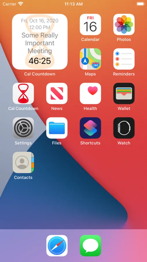 "Cal Countdown" is a free, simple iOS & Apple Watch app that automatically creates a color-coded countdown to the next event on your calendar and displays it on your Apple Watch face and/or your "Today" screen. The app is primarily intended to be used as a complication on your Apple Watch or as a widget.
