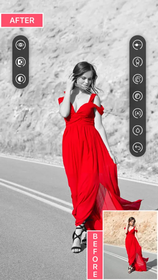 - Auto fill colors and highlight the parts you select while converting the resting parts in black and white to emphasize whatever you want.