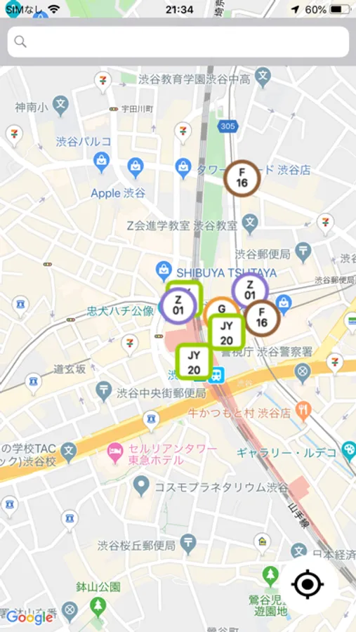 -If you are far from Tokyo, Tokyo station is pinned in the centre of the map instead of your current location