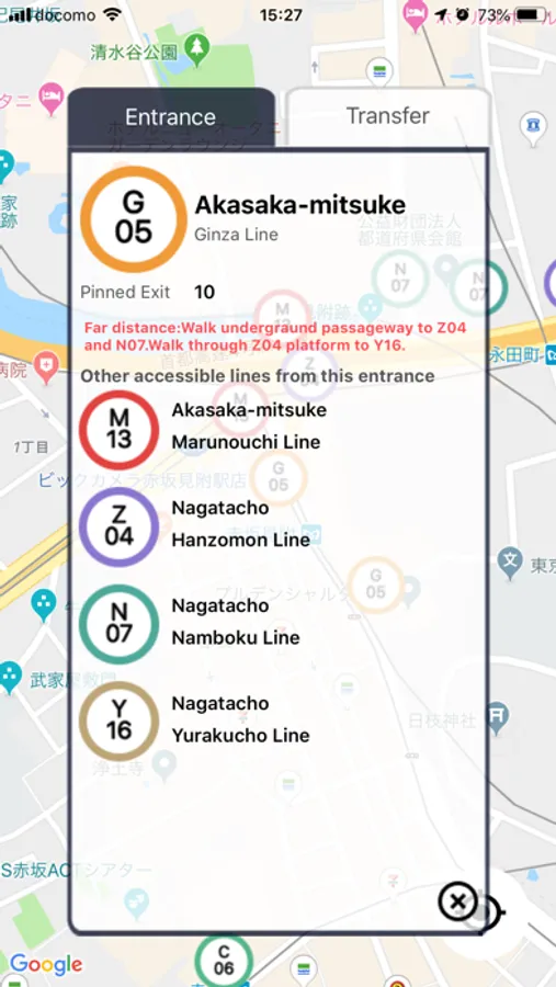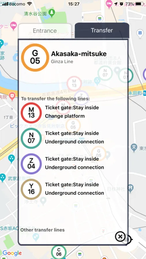 -Metro’s Gnome Tokyo shows subway stations with every line coloured and numbered on the map. The line colours and station numbers directly align with the official ones by Tokyo Metro and Tokyo Toei. Hence, the users can connect the real signboards of each station with the map in the app. Moreover, they can plan quickly without searching for a Japanese local who knows the Station Numbers.