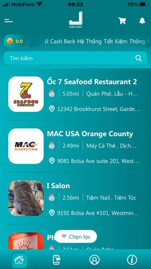 Helps customer to find the closest and best restaurants or any stores in town. Receive cash back (store credit) when dine in or using services in the app.