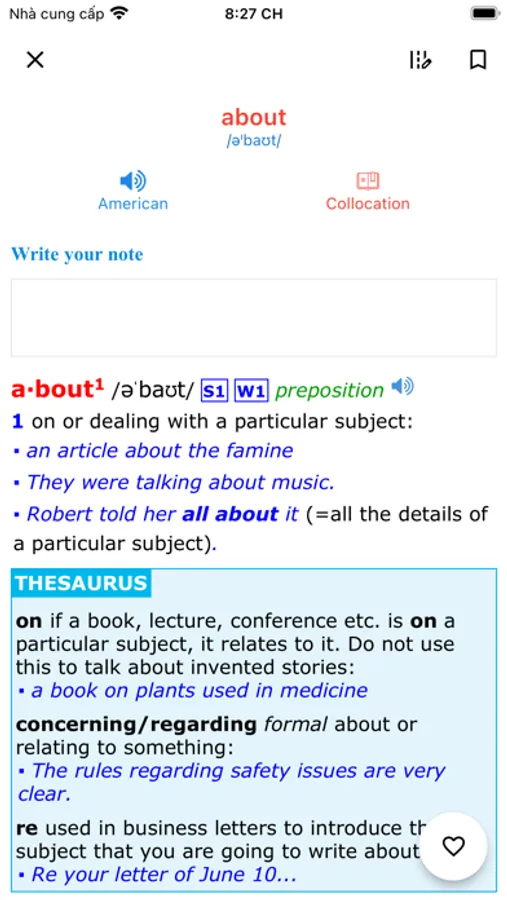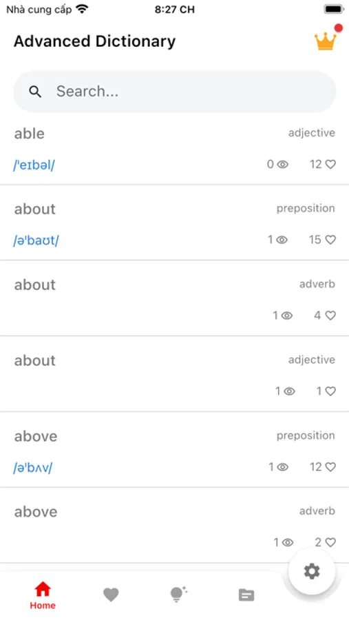 * Search words very fast, allow filter by type such as: noun, verb, ...
