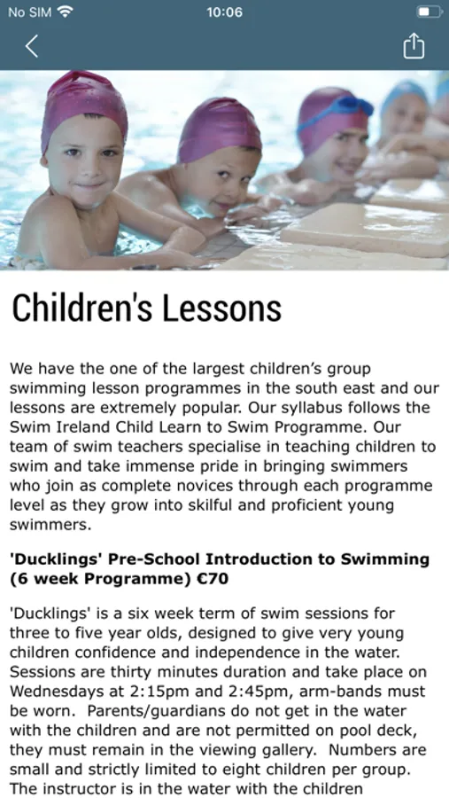 Share articles, classes or swim sessions with friends through Facebook and other Social Media channels. Share directions, news, facility information and offers with your friends.