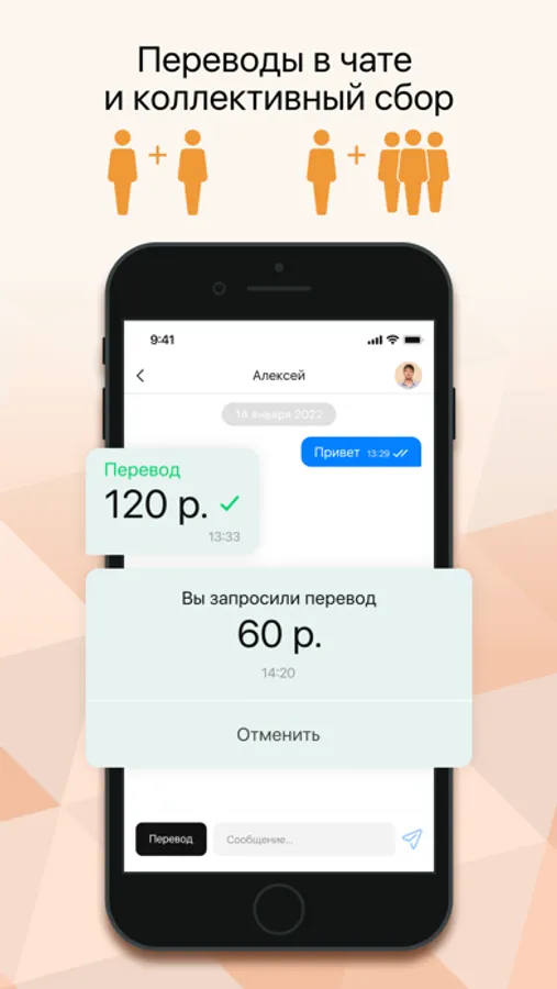 Переводите деньги в чате контактам из вашего смартфона и по QR. Вместе собирайте деньги на Дни Рождения и другие праздники через групповые чаты. Создавайте виртуальные визитки и делитесь контактами.