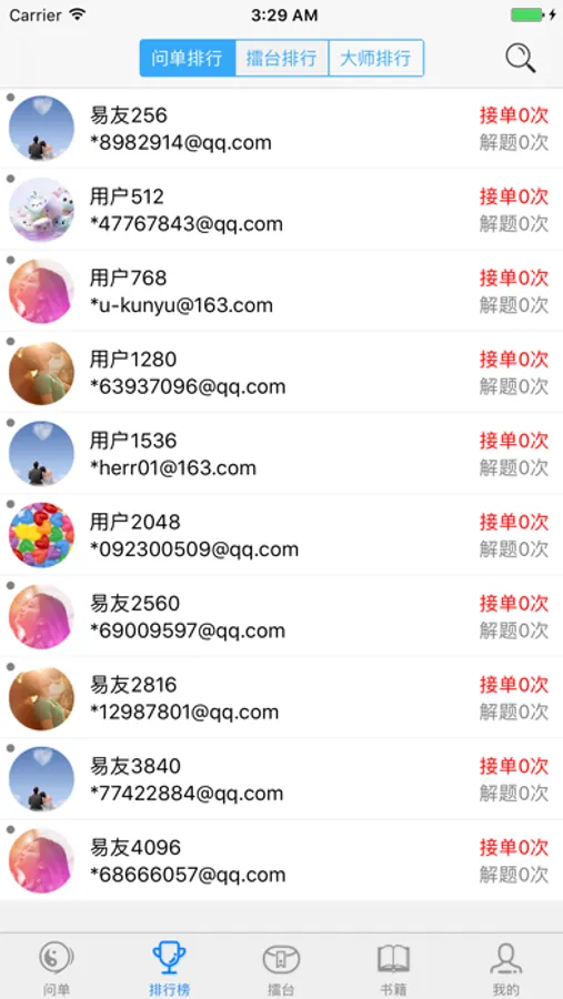 排行榜:包含问单排行榜、擂台排行榜、大师排行榜
